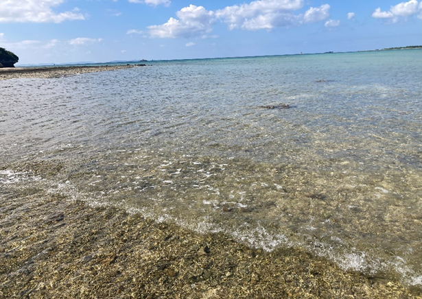水の中を泳ぐ小魚や貝殻の模様まではっきり見えるほどの透明度。